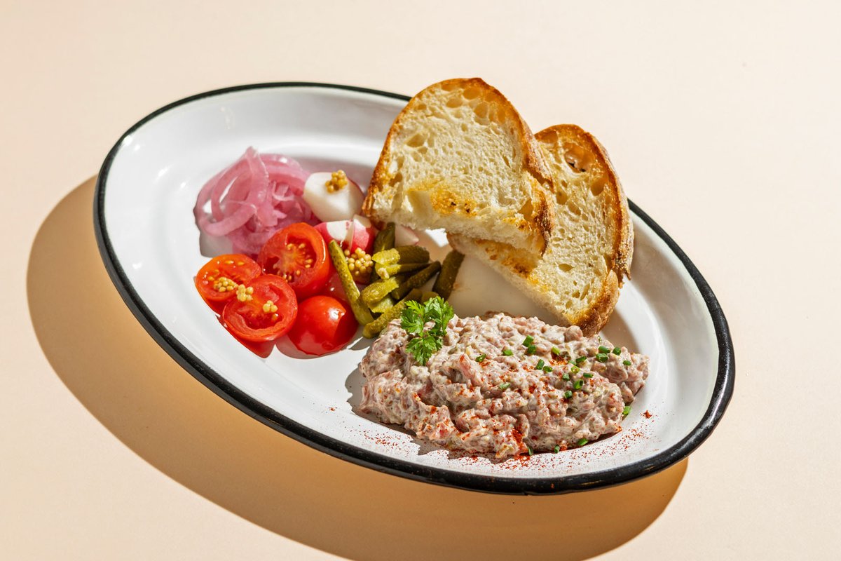 kovászolt házi kenyérrel, csalamádéval, mustárral
