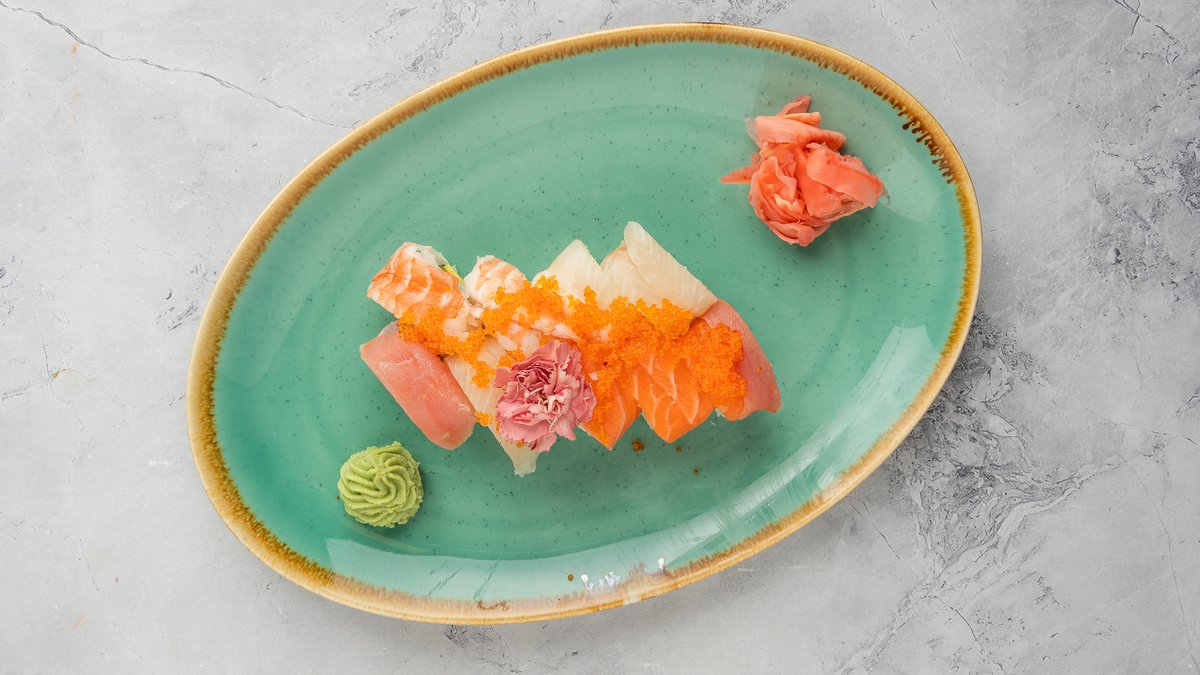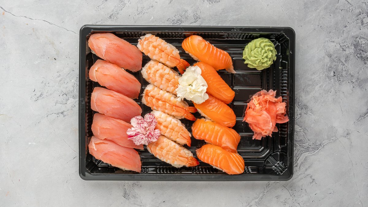 5 salmon nigiri, 5 tuna nigiri, 5 shrimp nigiri