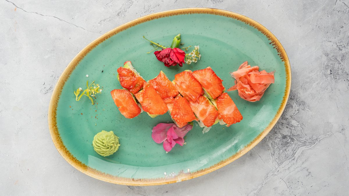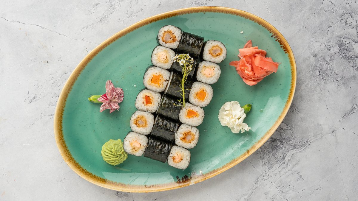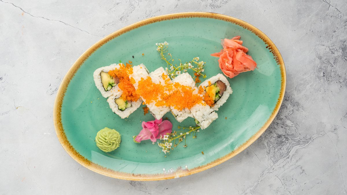(Mango, tobico, salmon, cucumber) with mango sauce