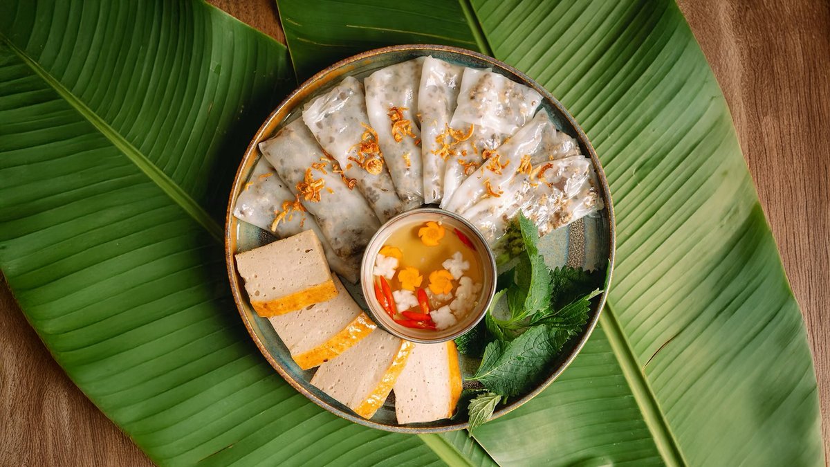 Minced pork and wood ear mushroom wrapped in steamed rice paper, served with sweet and sour fish sauce.