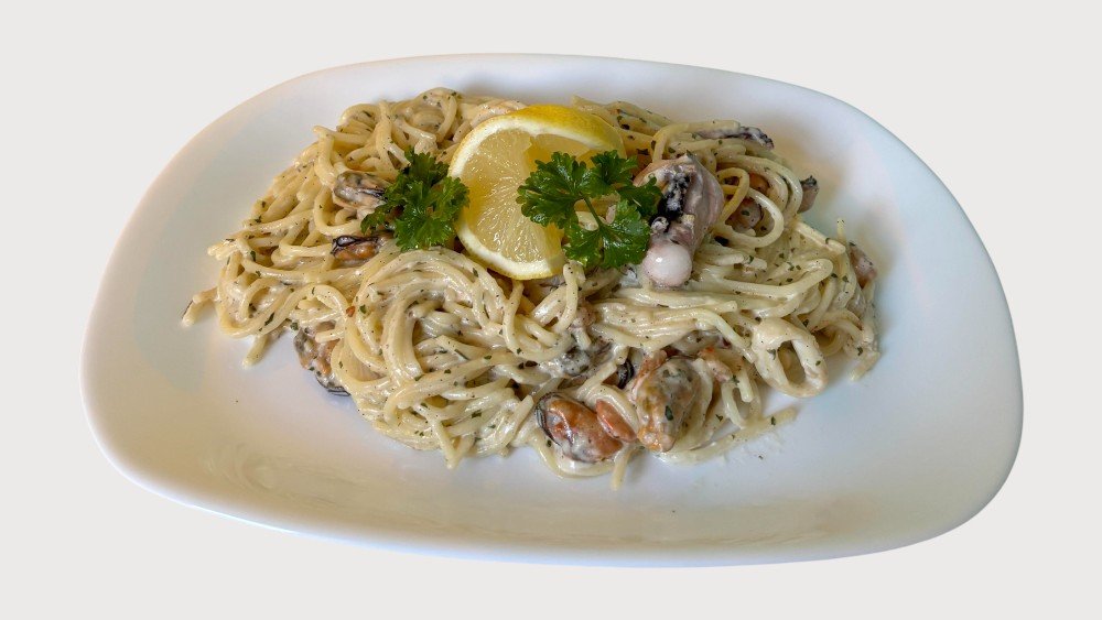paradicsomos alap, tengergyümölcse, citrom, sajt