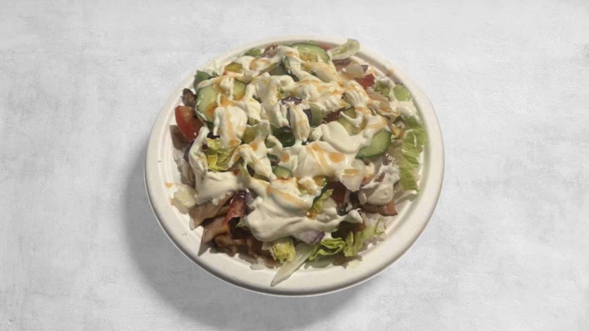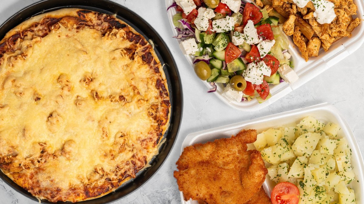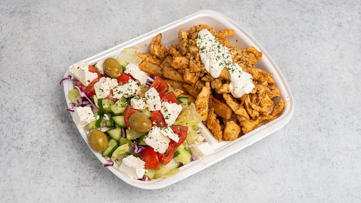 Gyros hús, feta sajt, olívabogyó és friss saláta