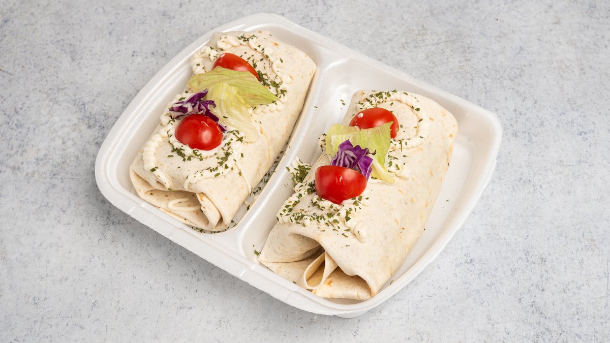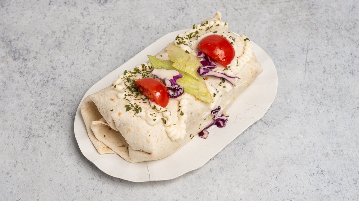 Gyros csirkehús, majonézes saláta, sajttal tortilla tekercsben