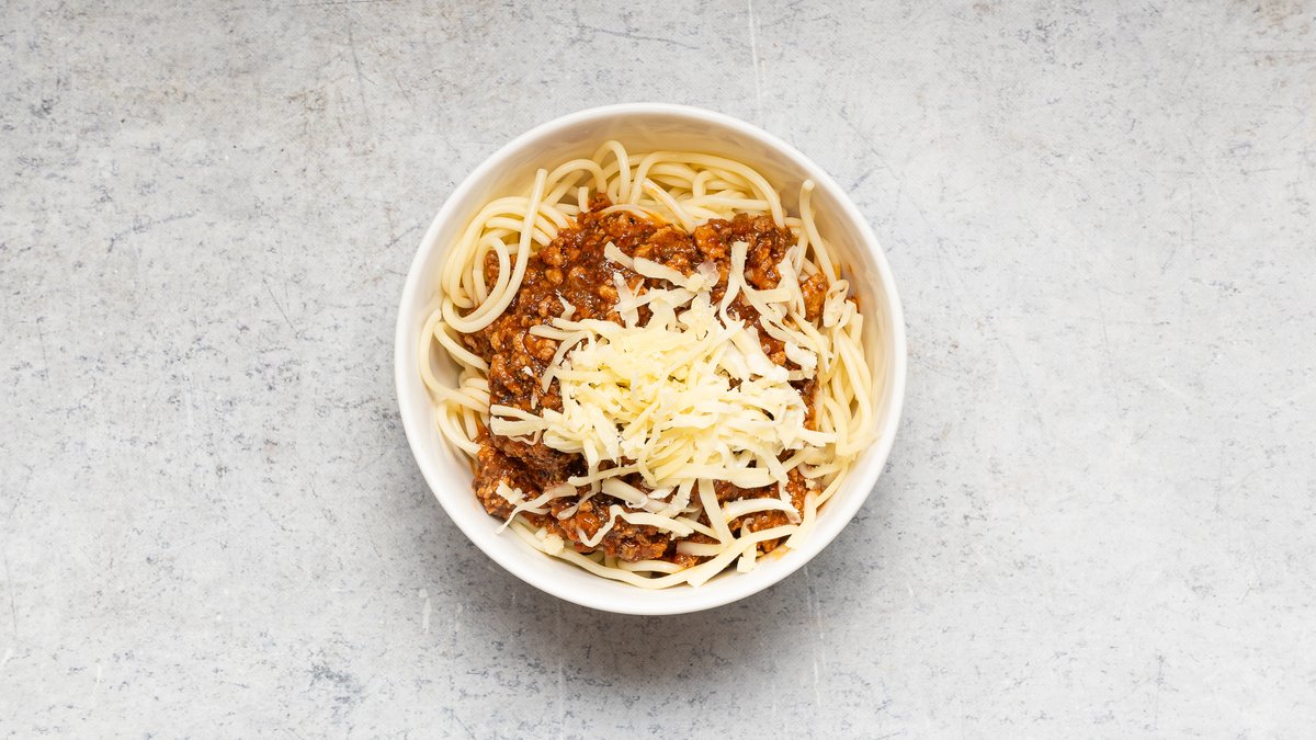 Az örök klasszikus – bolognai spagetti tésztával, ahogy mindig is szeretted, reszelt sajttal a tetején.