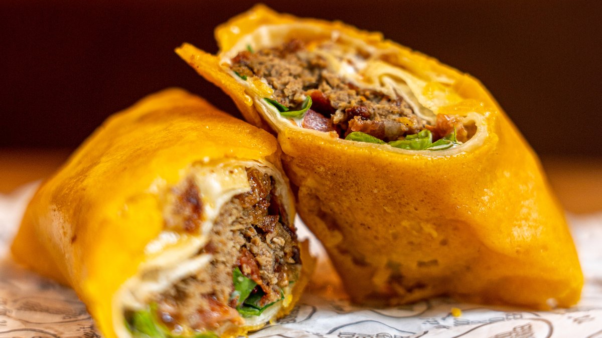 csicseriborsó fasírt, saláta mix, paradicsom, cheddar sajtkéreg, Monterey jack sajt, padlizsánkrém, spenótos tortilla falafel, salad mix, tomato, cheddar cheese crust, Monterey jack cheese, eggplant dip, tortilla with spinach