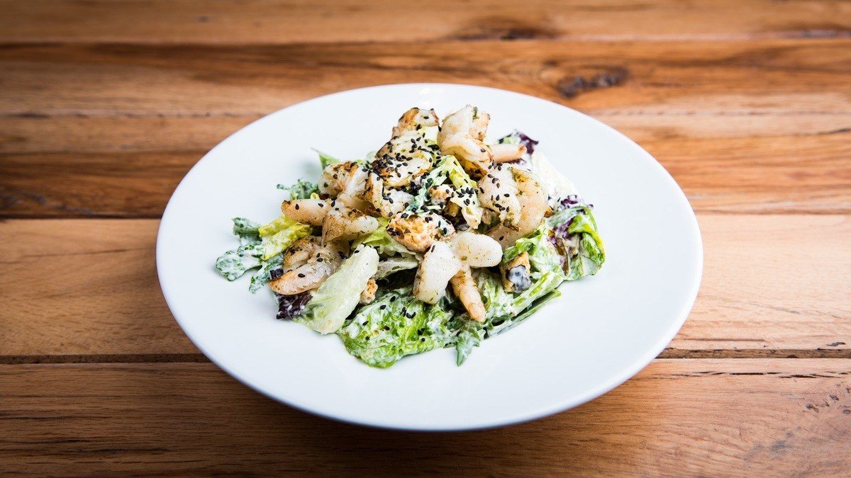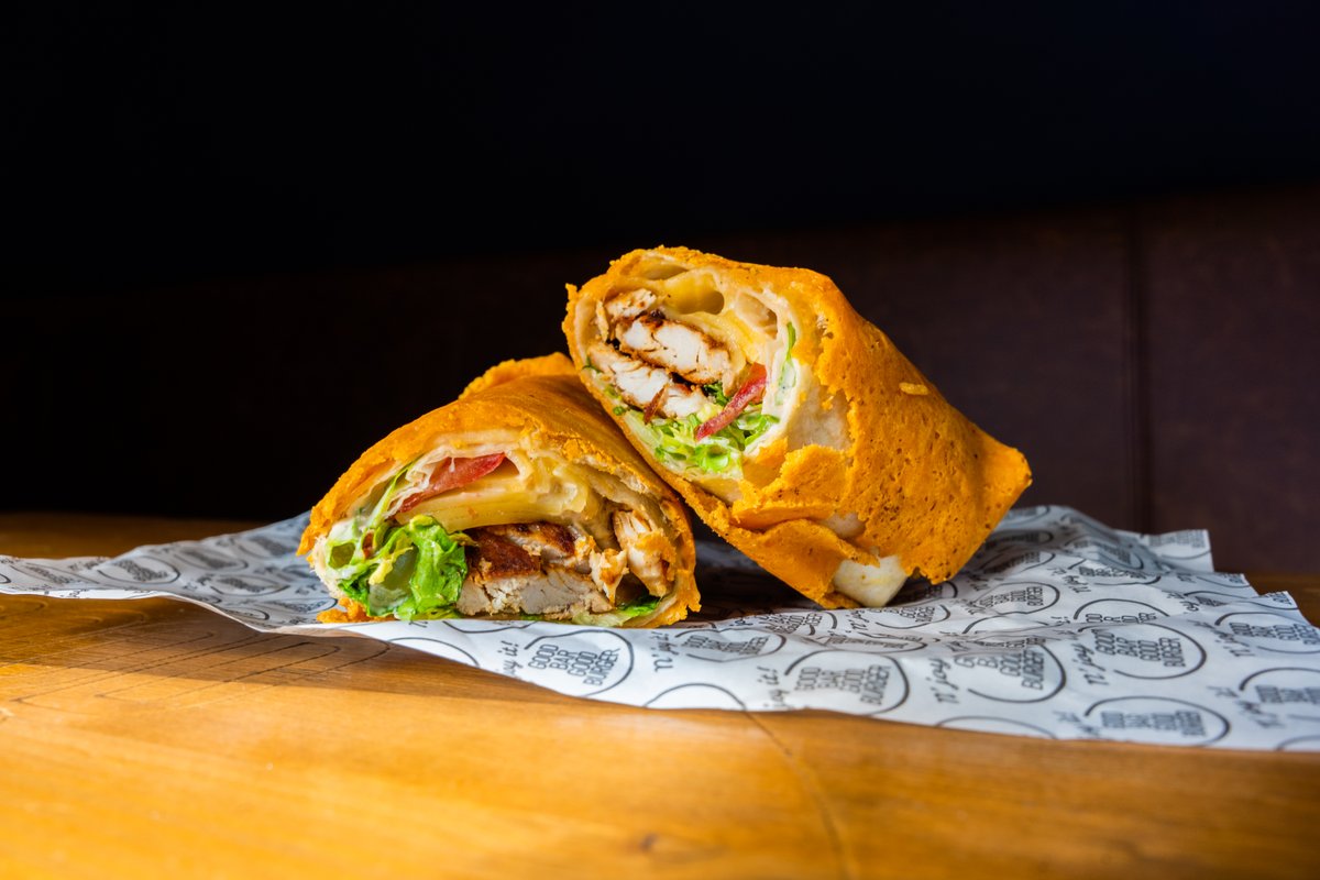 csirkemell roston, saláta mix, paradicsom, cheddar, Monterey Jack sajt, avokádos tejfölös salsa