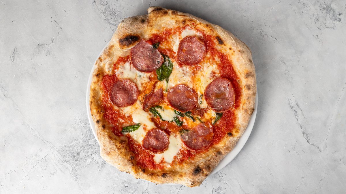 san marzano, fior di latte, bazsalikom, csmege szalámi