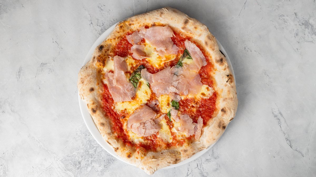 san marzano, fior di latte, bazsalikom, pármai sonka, koktélparadicsom, parmezánforgács