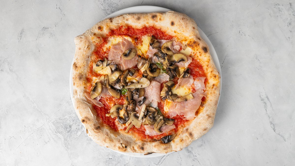 san marzano, fior di latte, bazsalikom, cotto, gomba