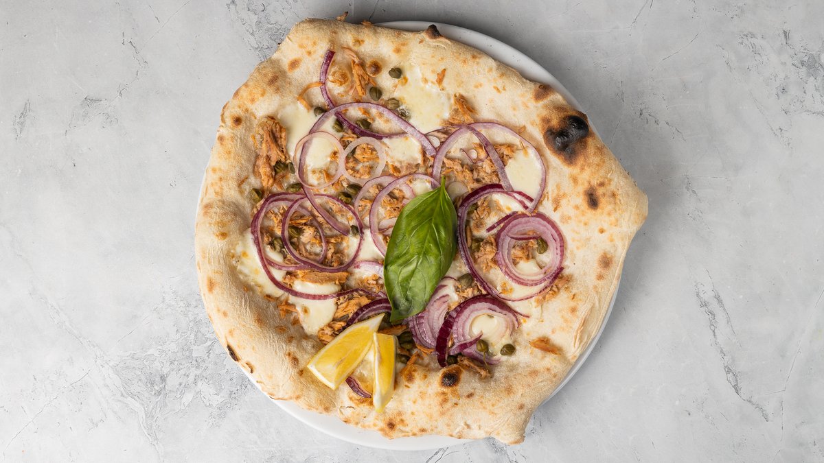 fior di latte, cotto, tuna, lilahagyma, kapribogyó, bazsalikom