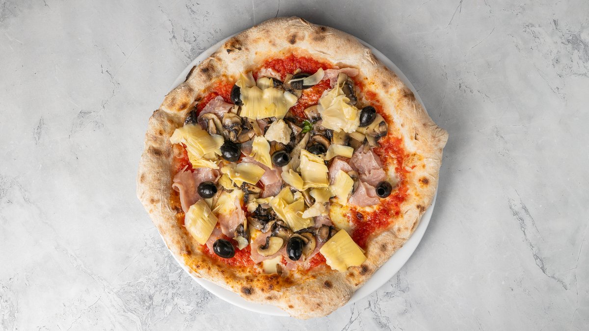 san marzano, fior di latte, fekete olíva, cotto,a rticsóka, gomba, bazsalikom