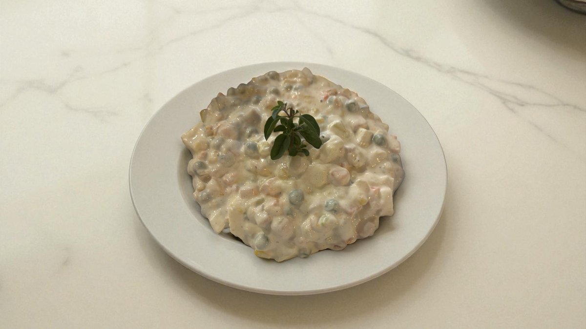 francia saláta alap ,majonézes tejfölös alap ,alma ,uborka.