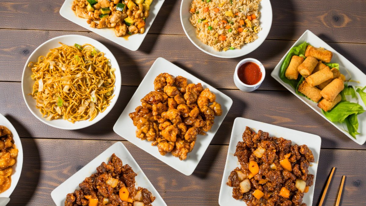 Klasszikus kínai gyorsételek, nagy adagok.