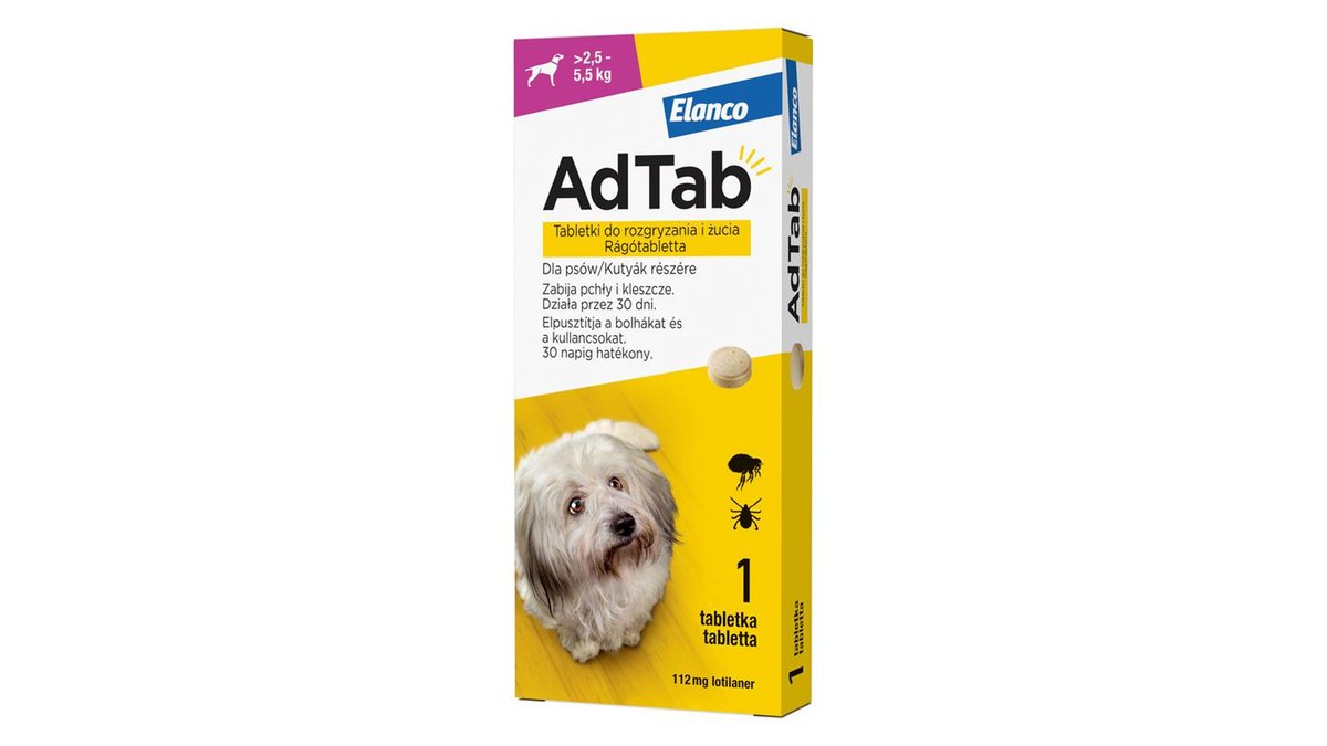 AdTab rágótabletta kis testű kutyáknak (>2,5-5,5 kg) 112mg