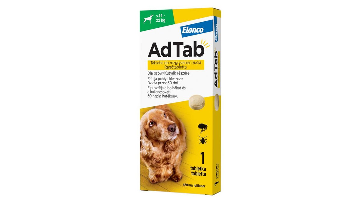 AdTab rágótabletta nagy testű kutyáknak (>11-22 kg) 450mg