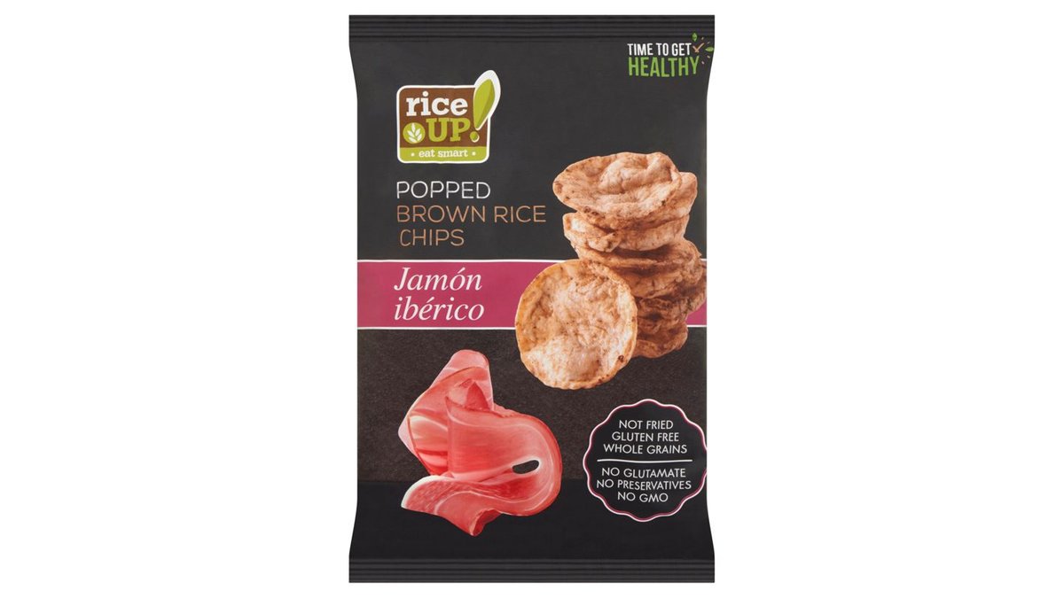 RiceUp! Eat Smart teljes kiőrlésű barna rizs chips ibériai sonka ízesítéssel 60 g