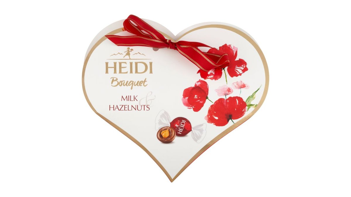 Heidi Bouquet tejcsokoládé praliné pralinékrém töltelékkel és egész karamellizált mogyoróval 100 g