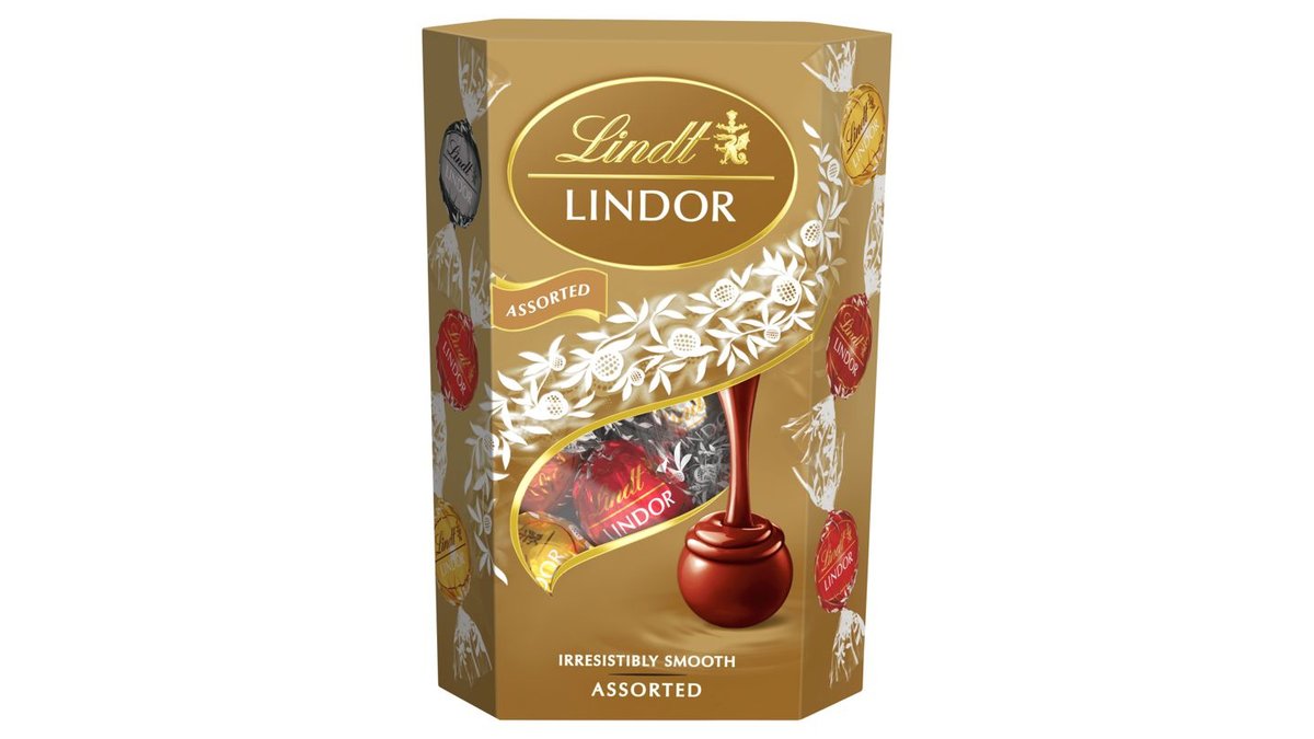 Lindt Lindor tejcsokoládé, fehércsokoládé és extra étcsokoládé pralinék töltelékkel 200 g