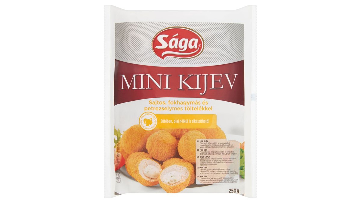 Sága Mini Kijev fokhagymás-sajttal töltött, panírozott, gyorsfagyasztott pulyka és csirke hús 250 g