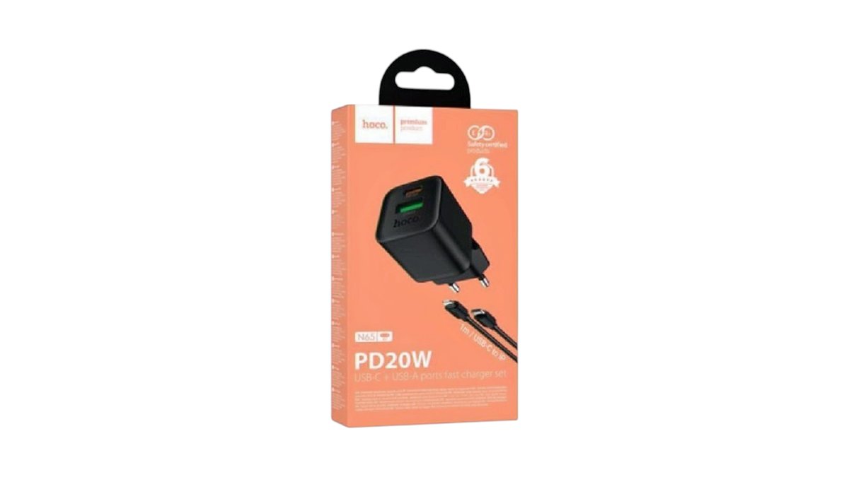 HUF 5,900HUF 6,800HOCO N65 INGENIOUS HÁLÓZATI GYORSTÖLTŐ (USB - TYPE-C) (PD) 20W + QC3.0 TYPE-C/LIGHTNING KÁBELLEL FEKETE