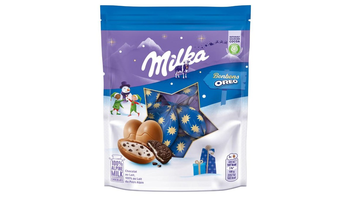 Milka Oreo alpesi tej felhasználásával készült tejcsokoládé tejes krémtöltelékkel 86 g