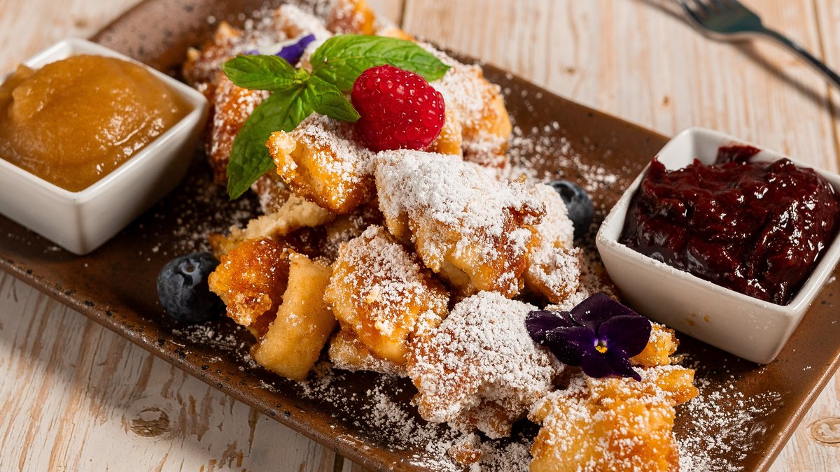 (tiroli császármorzsa almapürével, szilvalekvárral)