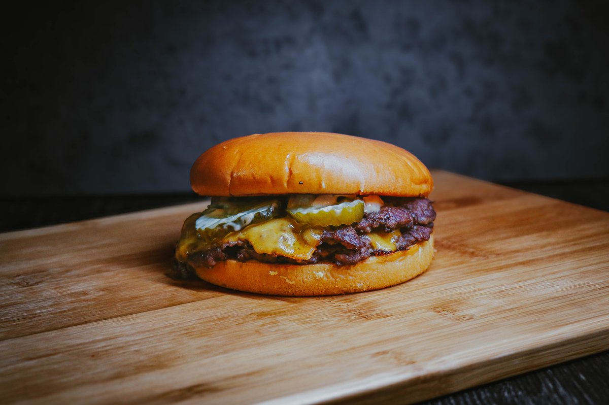 burger buci, 2 db marhahúspogácsa, hagyma 2 db cheddar sajt, savanyú uborka, burger szósz vagy chipotle (pikáns) majonéz