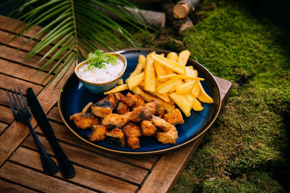 Atlanti tőkehal sörbundában, sült burgonya, csúszka, marie rose szósz