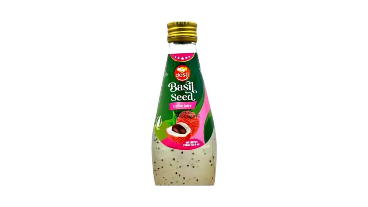 A Dosti Licsi Bazsalikommag Ital valódi licsi levet (~30 %) és hidratált bazsalikommagokat (~7 %) tartalmaz. A magok lágy, zselés bevonatot kapnak, enyhén roppanó textúrát biztosítva. Könnyed édes, frissítő ital—ideális meleg napokra vagy trópusi élményhez.