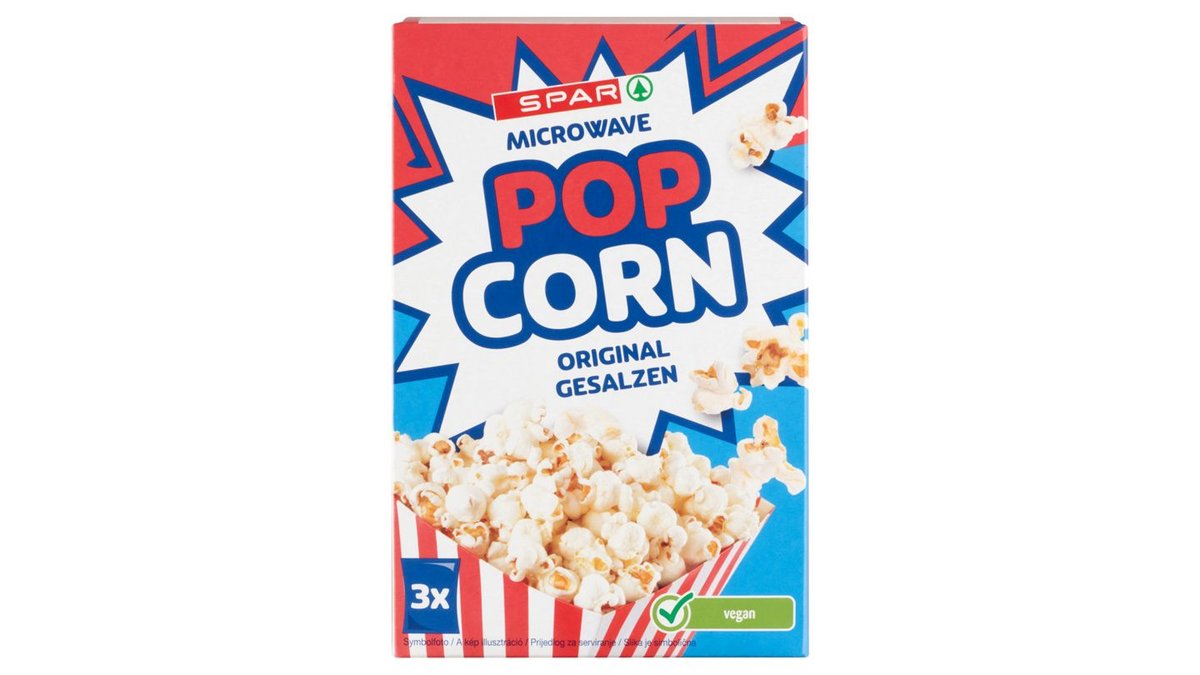 SPAR Pop Corn mikrohullámú sütőben készíthető sózott pattogatni való kukorica 3 x 100 g (300 g)