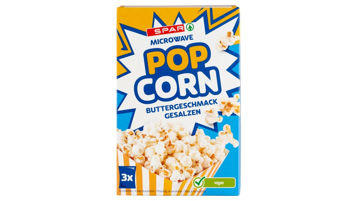 SPAR Pop Corn mikrohullámú sütőben készíthető, vajas ízű, sózott pattogatni való kukorica 3 x 100 g