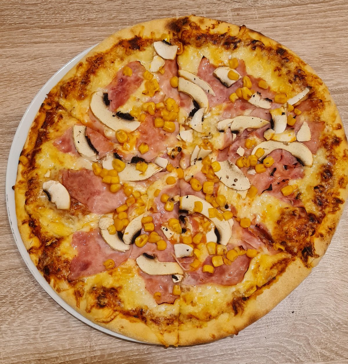 pankómorzsában, sonkával, lilahagymával, fetasajttal, olajbogyóval, választható körettel