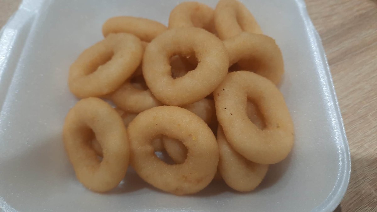 köret, 10db hagymakarika, 10db sajtgolyó, 1 adag hamburgerszósz