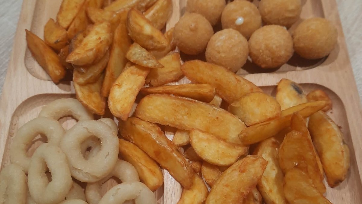 2 adag köret, 10db fasírt golyó, 10db kukorica falatka, 10 db sajtgolyó, 10db mini ropogós hagymakarika, 10db Mac'N'Cheese, 10db csirke nuggets