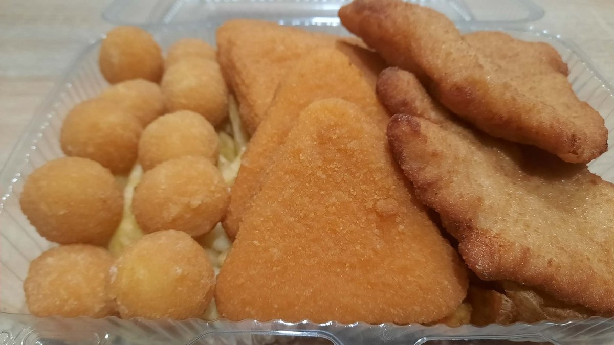 2 adag köret, 5db fasírt golyó, 5db kukorica falatka, 5 db sajtgolyó, 5db mini ropogós hagymakarika, 5db Mac'N'Cheese, 5db csirke nuggets