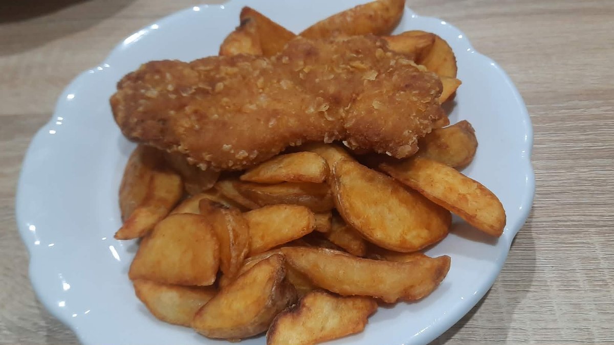Csirkemell csíkok, borsos panírban + válaszható köret