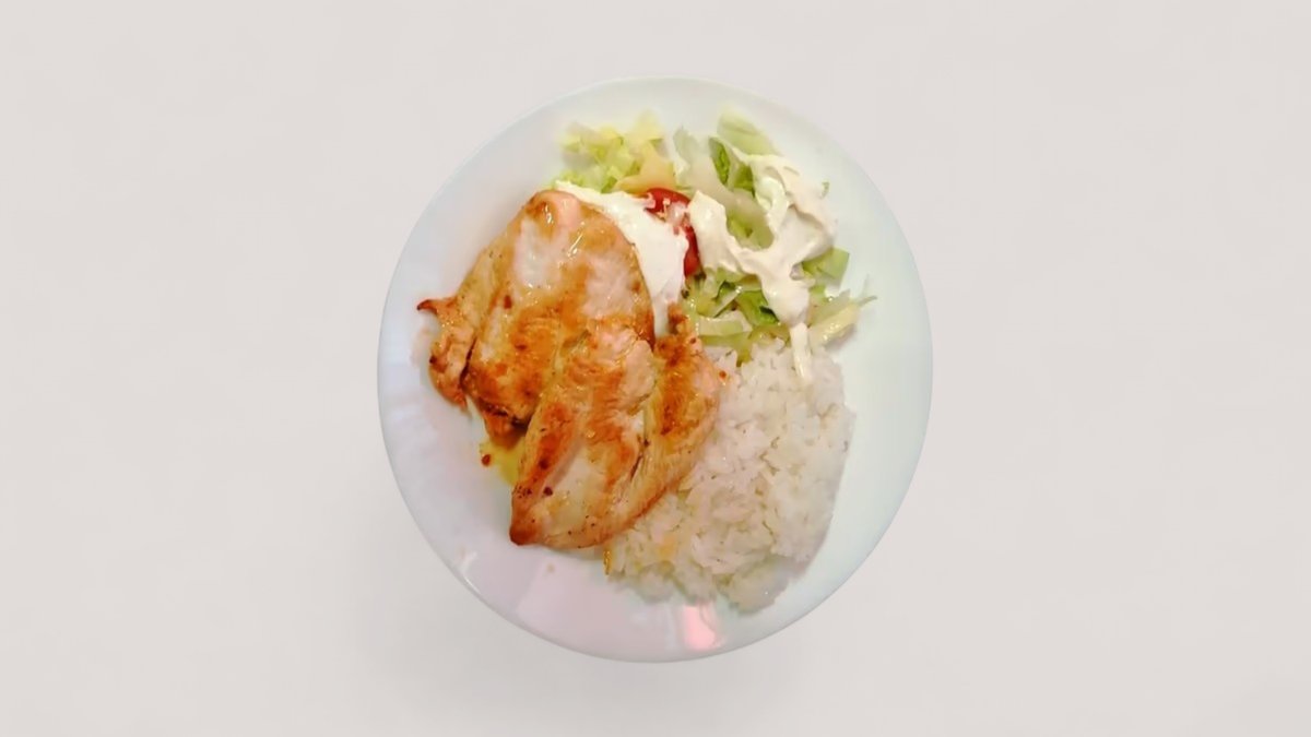Grillezett csirkemell, friss saláta, jázmin rizs, tartár