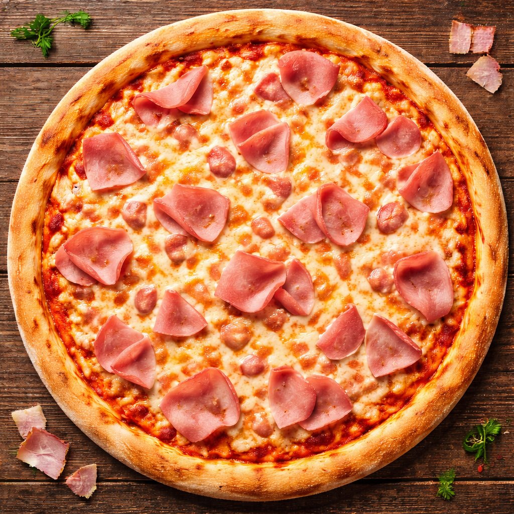 Sonka, gomba, kukorica, pizza szösz, sajt