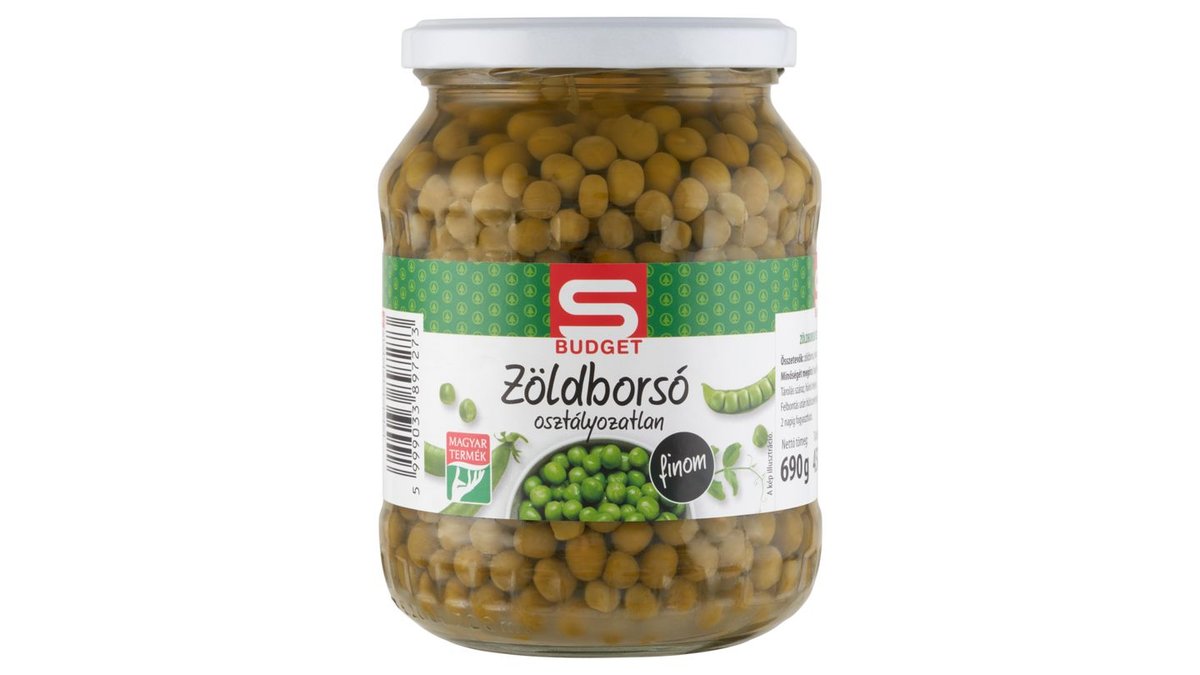 S-Budget osztályozatlan finom zöldborsó 690 g