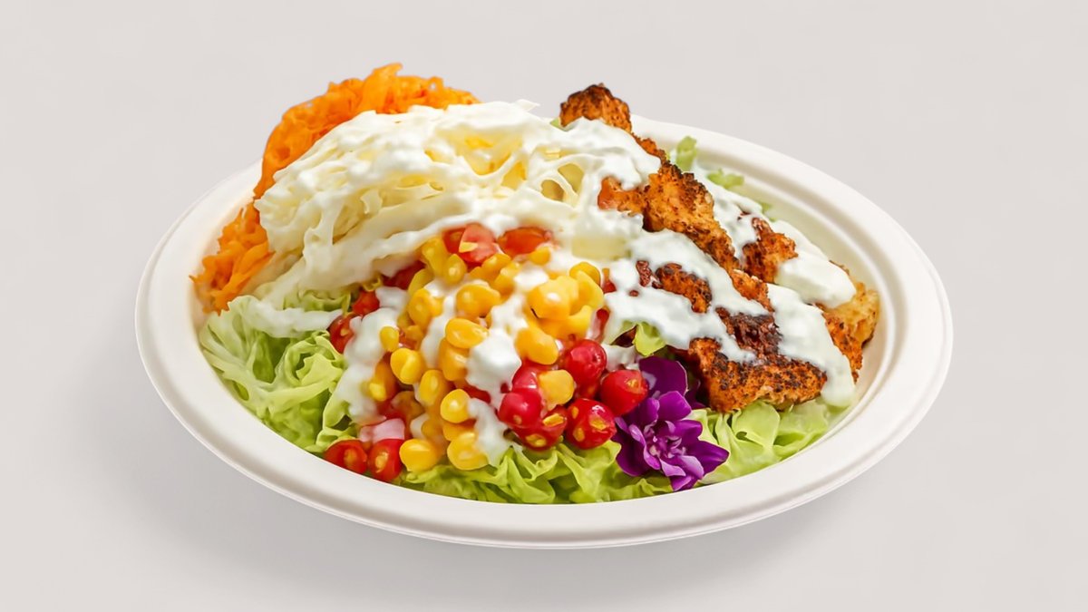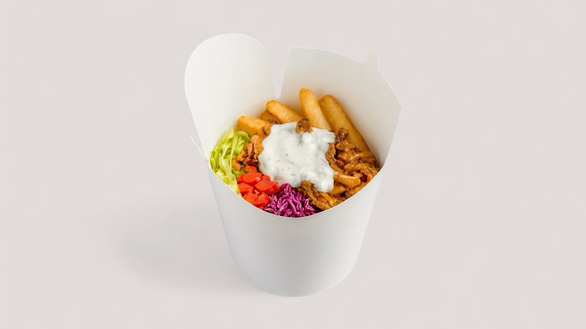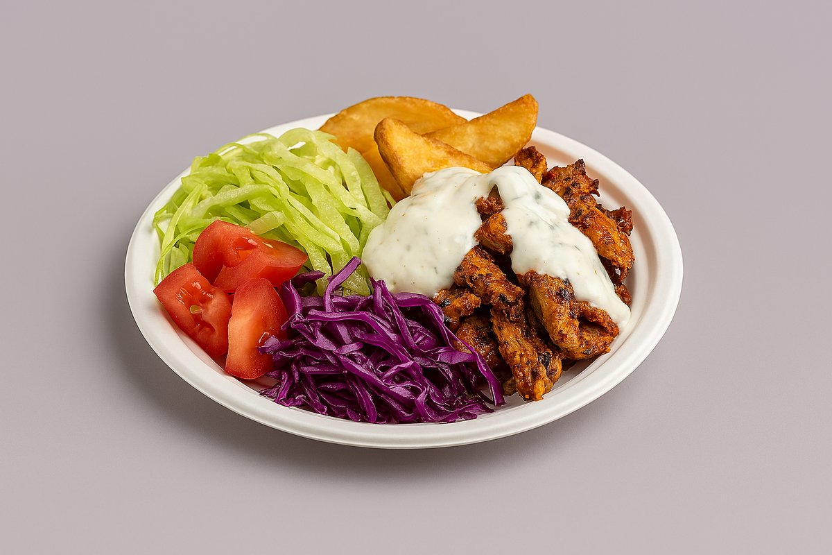 döner hús, sültkrumpli, jégsaláta, lilakáposzta, paradicsom, sülthagyma, fokhagymás kapros joghurtszósz (mini adag)