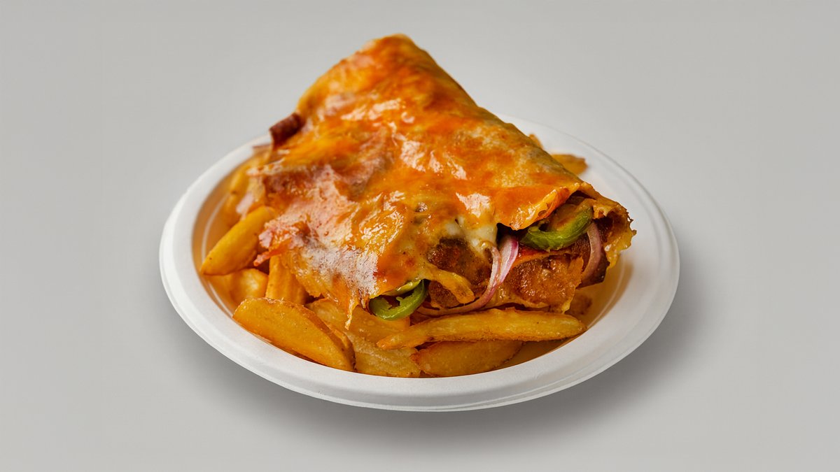 döner hús, sültkrumpli, cheddar sajtszósz