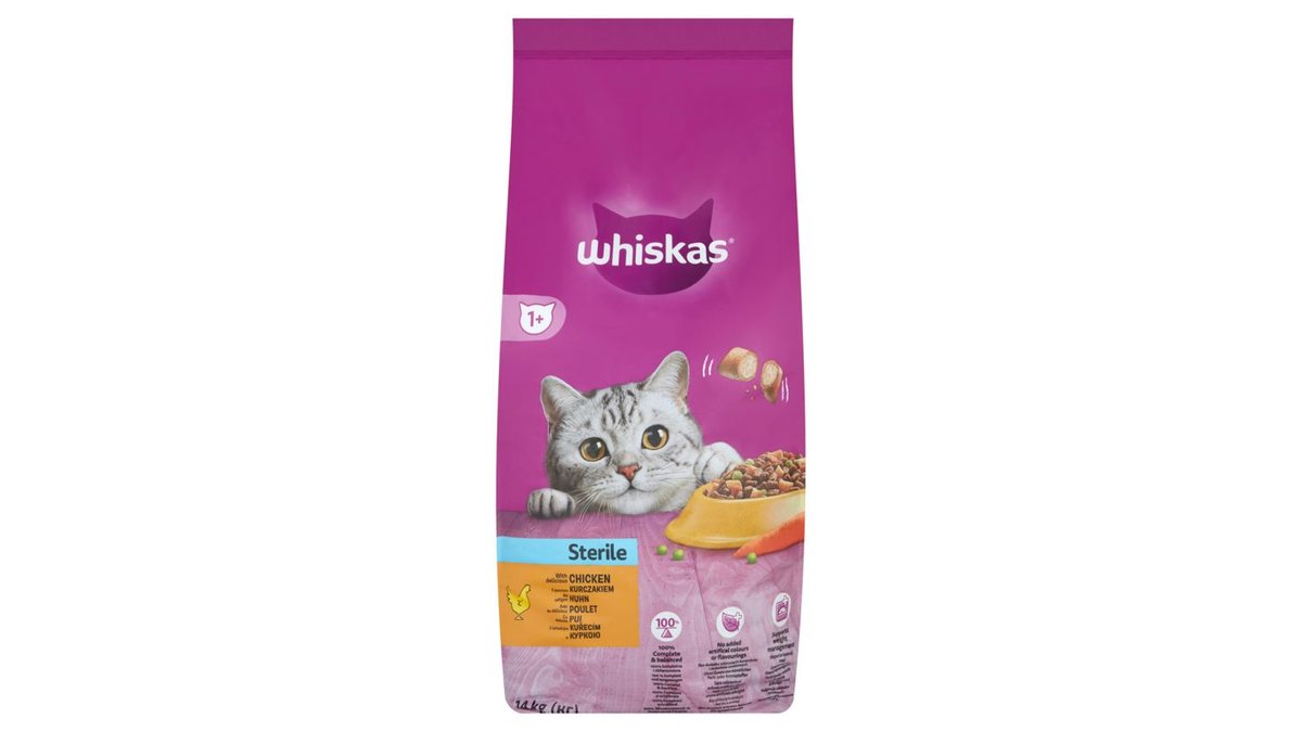 Whiskas Sterile teljes értékű szárazeledel felnőtt macskák számára csirkével 14 kg
