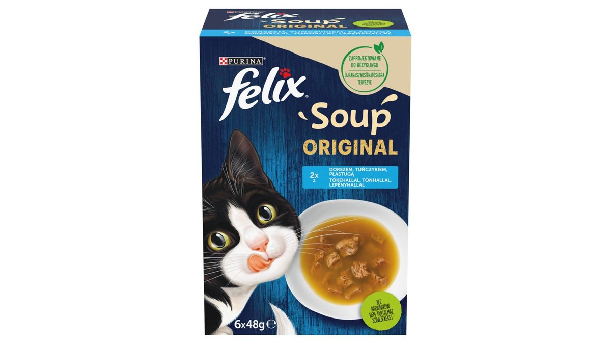 Purina Felix Soup Original halas válogatás szószban nedves macskaeledel 6 x 48 g