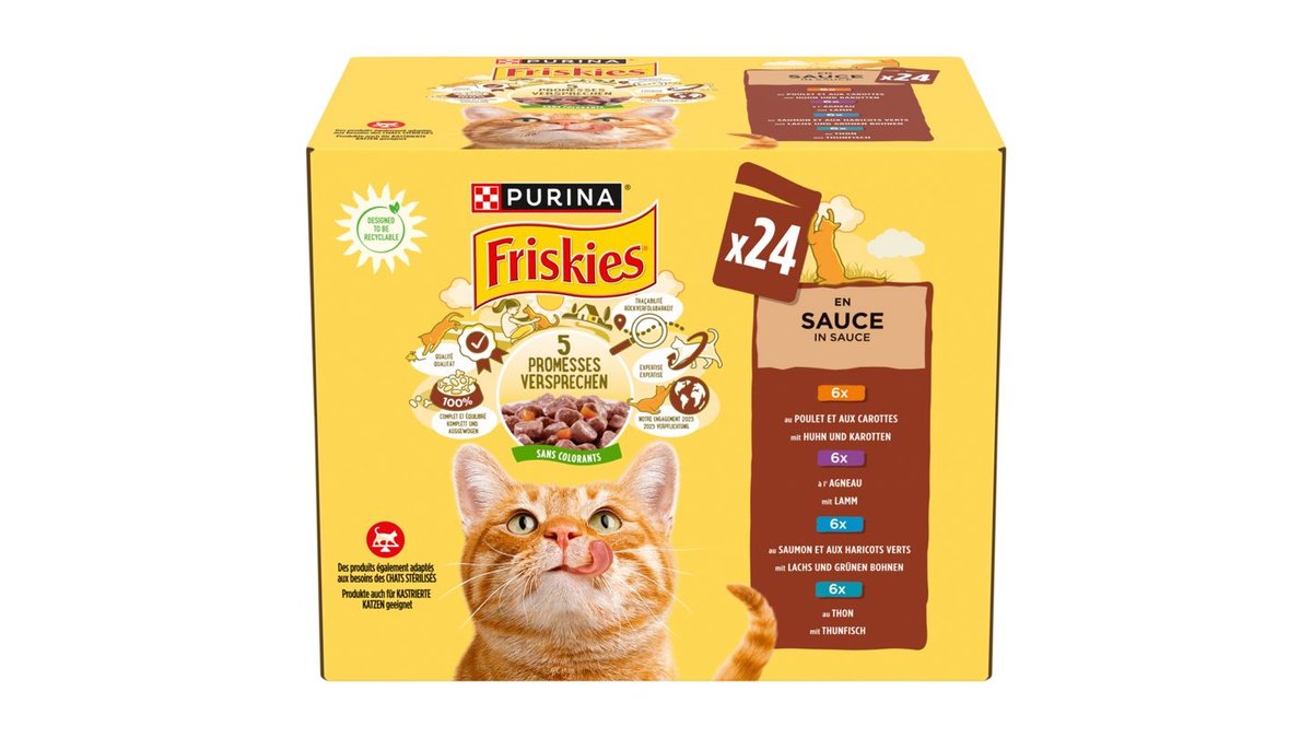 Purina Friskies szószban csirkével/marhával/báránnyal/kacsával nedves macskaeledel 24 x 85 g