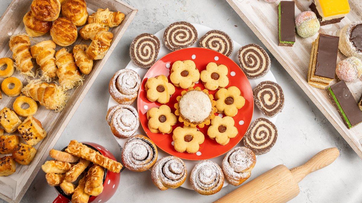 Pizzák, péksütik és sütemények egy helyen.