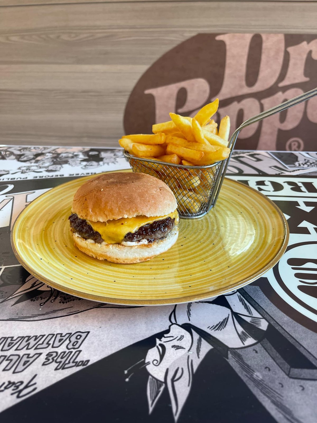 buci,saláta, paradicsom, hagyma, húspogácsa, cheddar sajt, guacamole, jalapeno paprika, majonéz