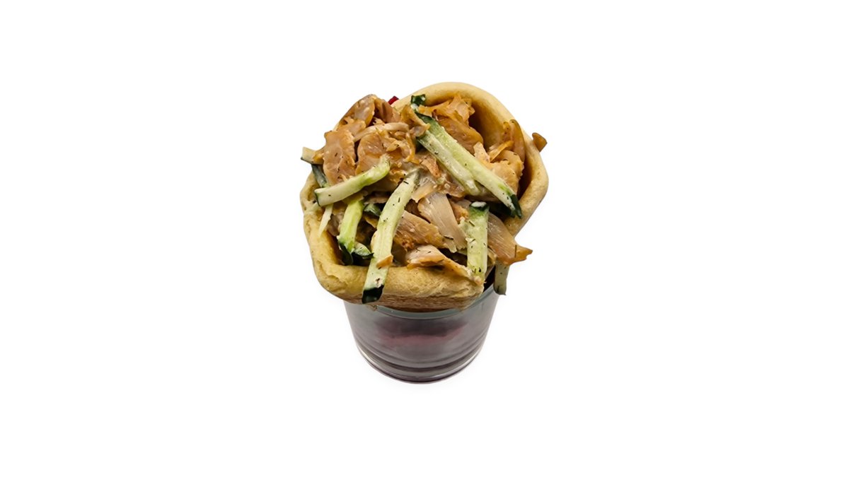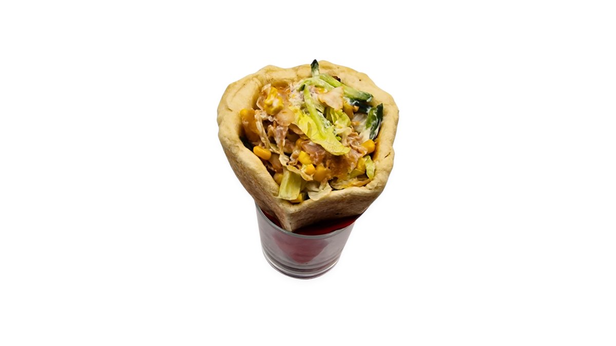 Sajtkrém, gyros hús, kígyóuborka, kukorica, saláta