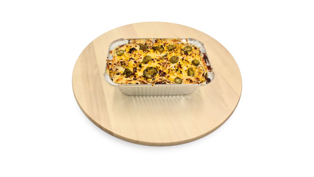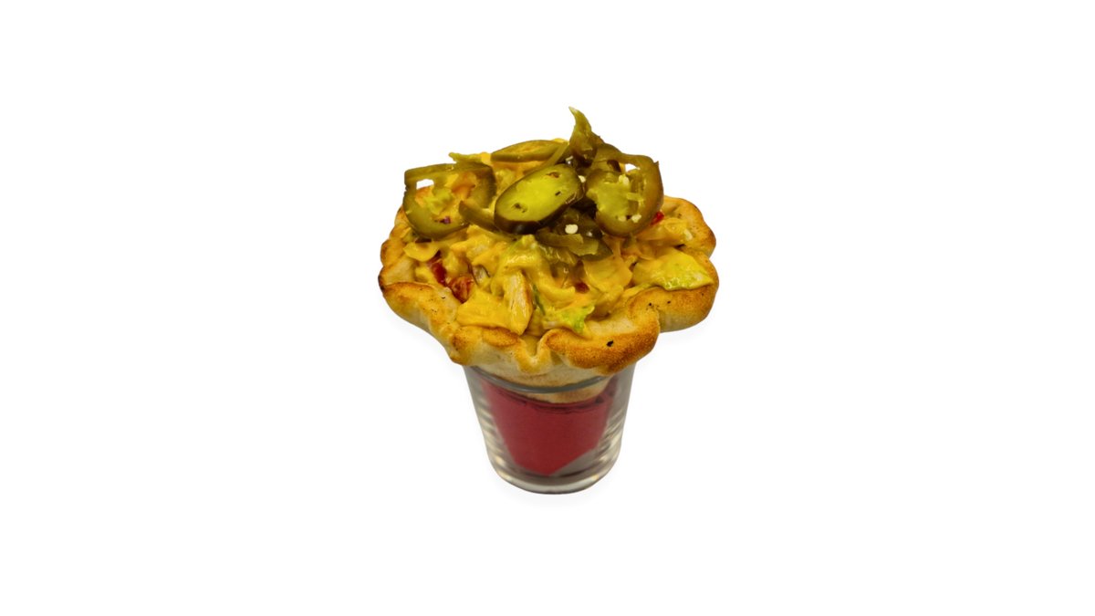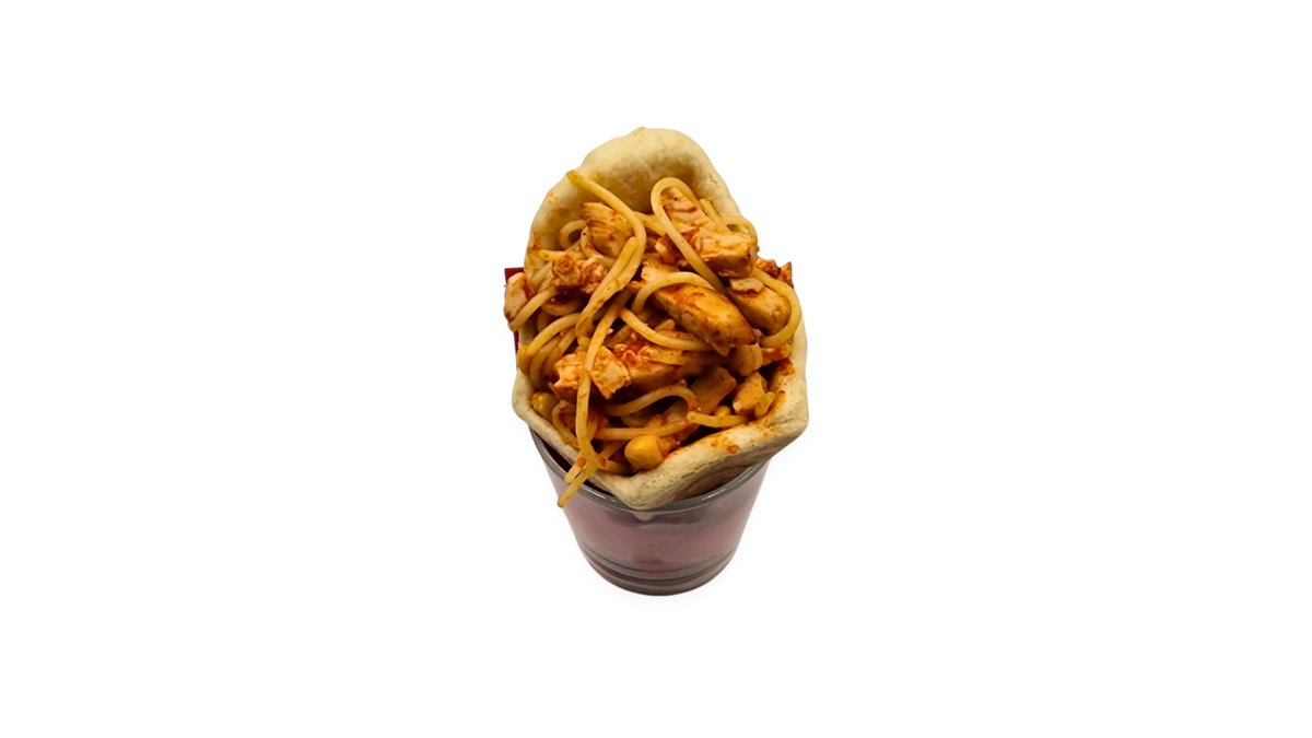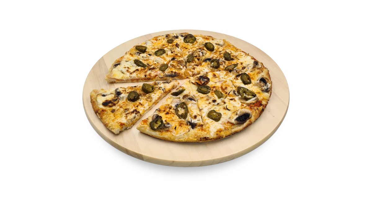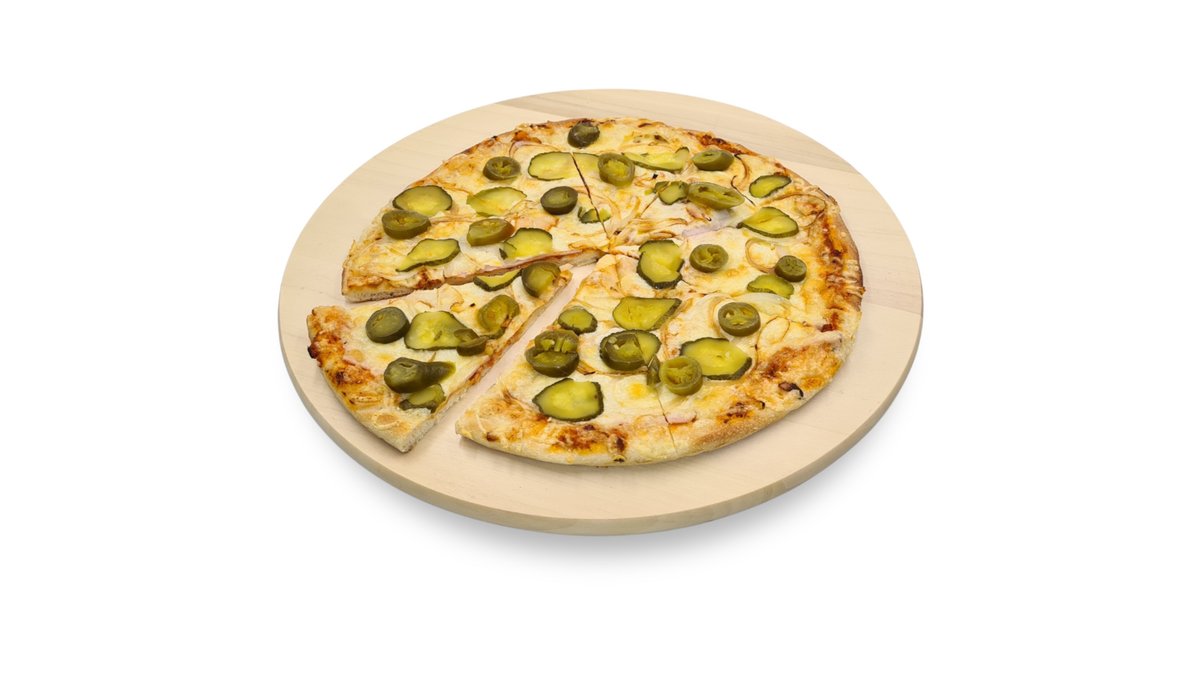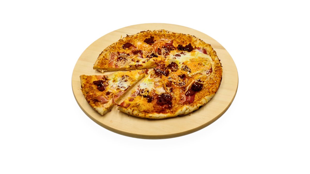 Májkrémes-tejfölös-darálthúsos alap, sonka, sajt, gomba, hagyma, majonéz, chili, jalapeno paprika, spagetti tészta