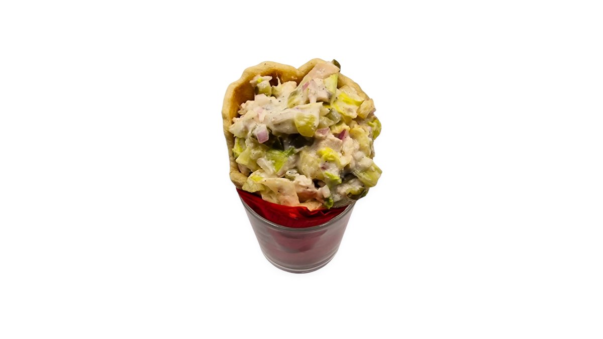 Saláta, hagyma, paradicsom, csirkemell csíkok, majonéz jalepano, cheddar szósz
