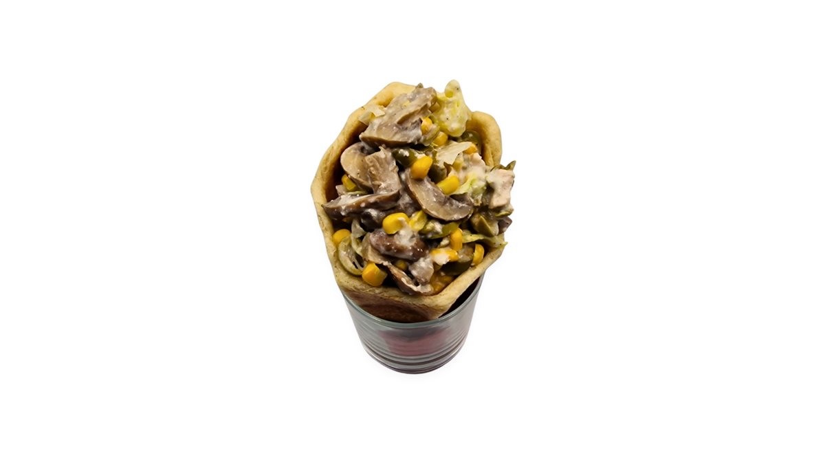 Tejszínes csirkemell, saláta, majonéz, kukorica, olíva, gomba